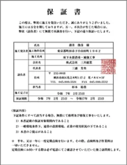 施工完了後には、完工書をお渡しいたします。また後日には、施工前と施工後の写真も郵送いたします。